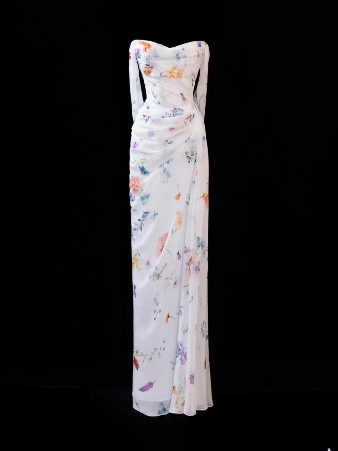 Floral Prom Dress Aesthetic Sheath Strapless With Pleated Style Impress White Long Prom Dresses Party Formal Gowns HZ0311
