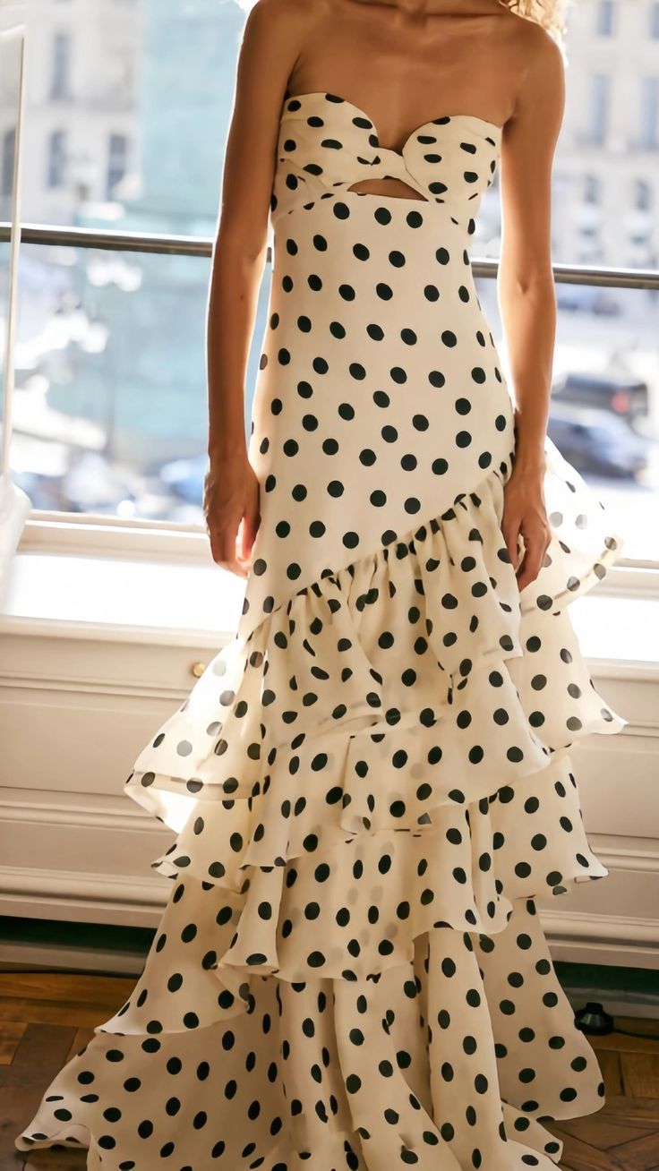 Strapless Mermaid Long Prom Dresses Dots Ruffle Sleeveless Party Dress HZ0311