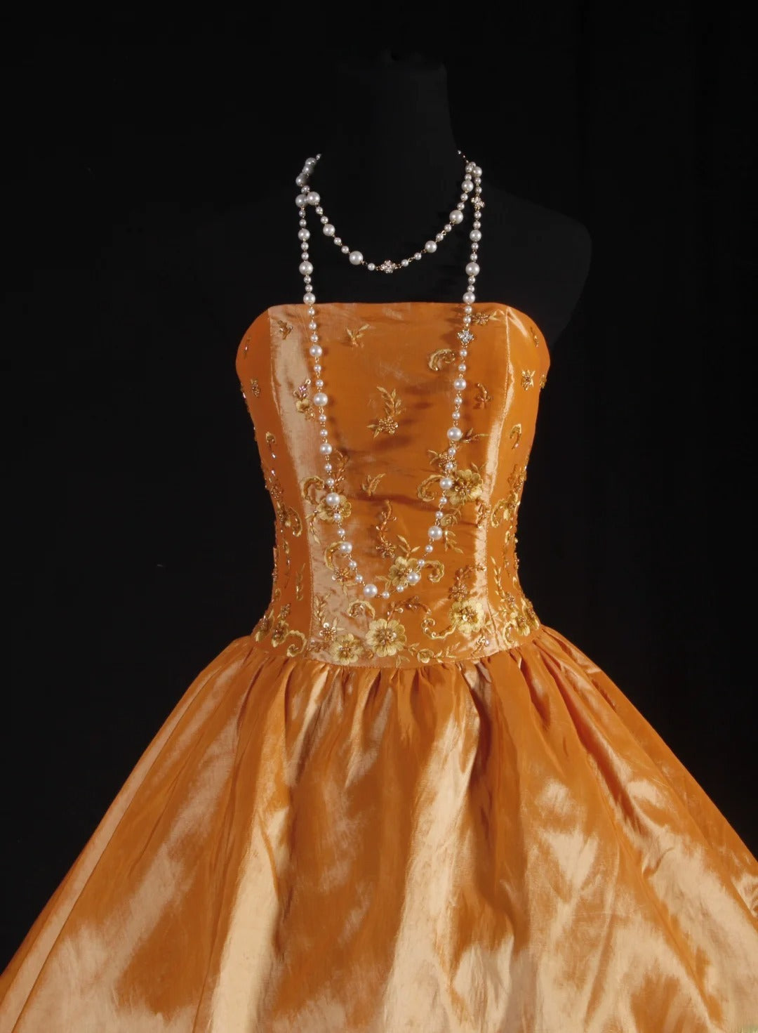 Cute Ball Gown Strapless Orange Taffeta With Beads Short 16th Birthday Dress Homecoming Dresses Cocktail Gown HZ0311