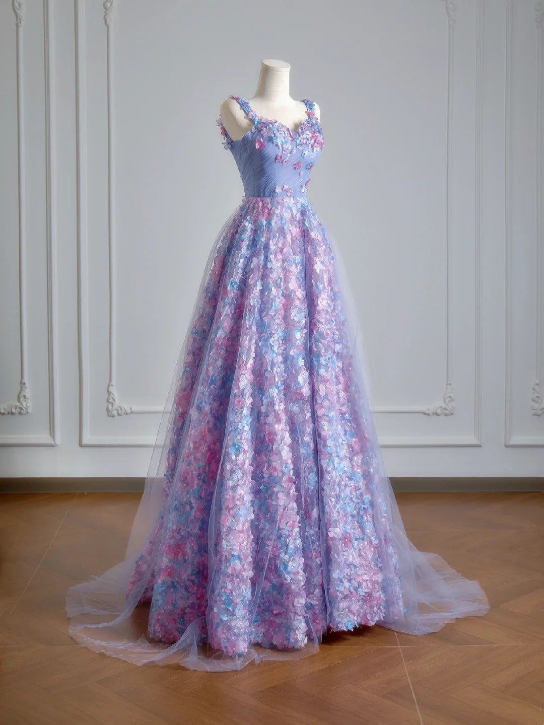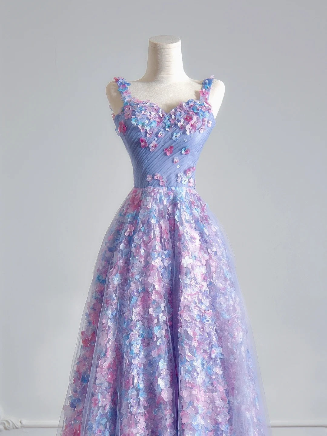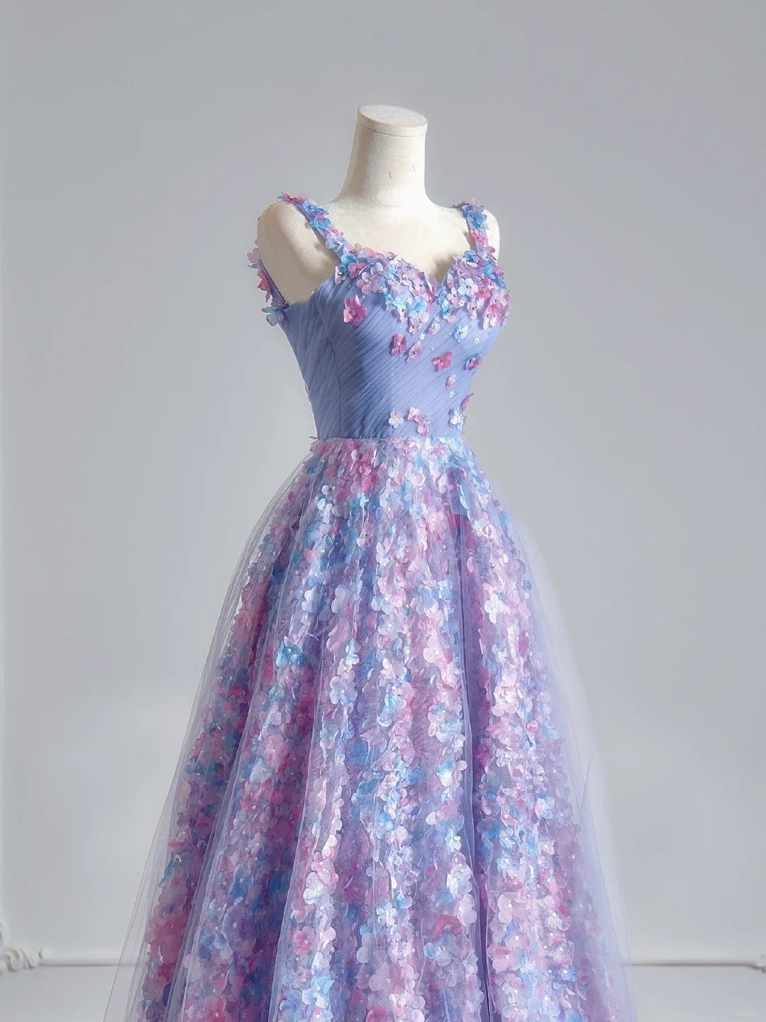Princess A line Spaghetti Straps Lilac Tulle Floral Prom Dresses Long Evening Formal Gown With Scarf Party Gowns HZ0311