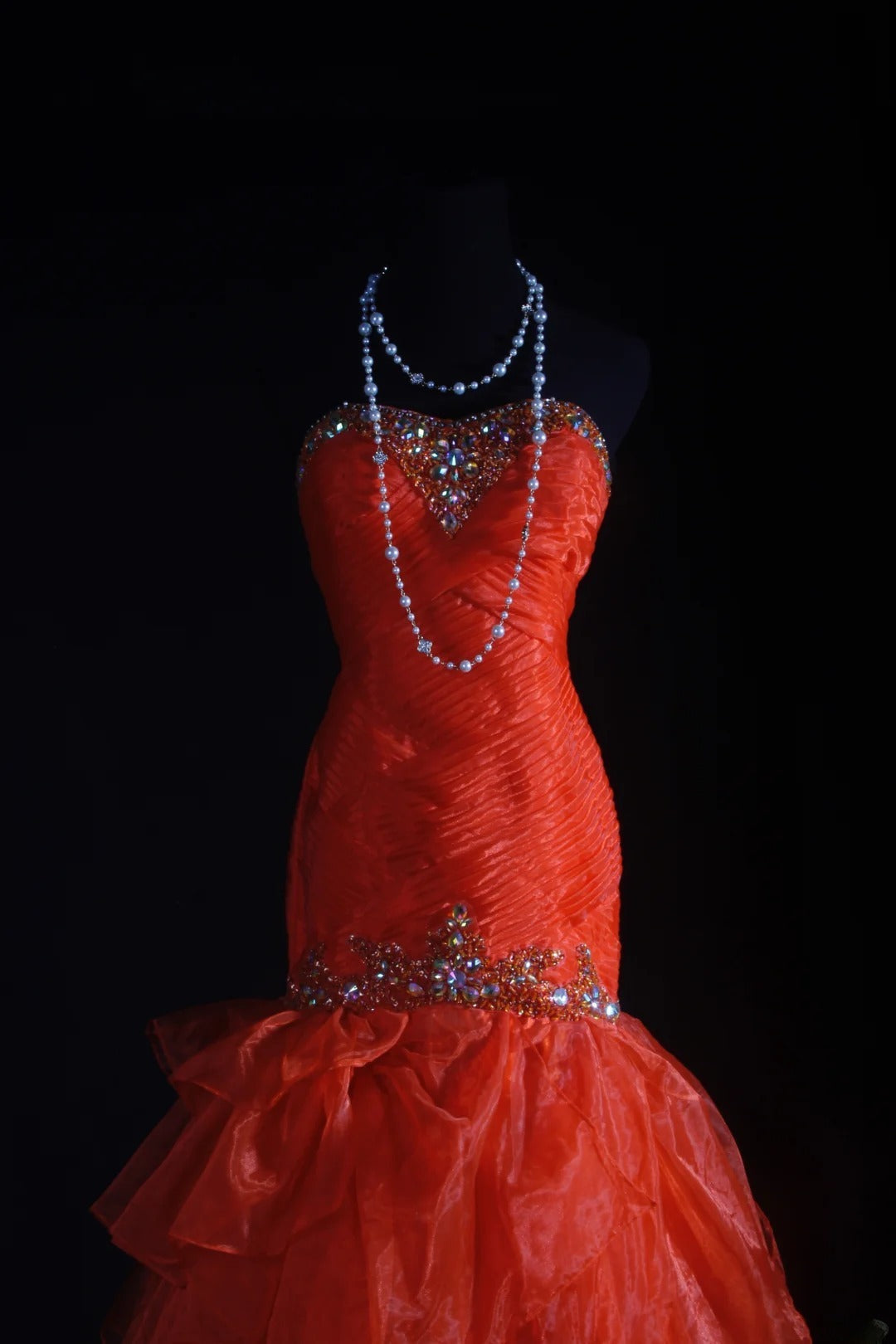 Vintage Mermaid Sweetheart Red Long Party Dress With Tulle Beads 1950s Retro Classy Birthday Dinner Prom Dress HZ0311