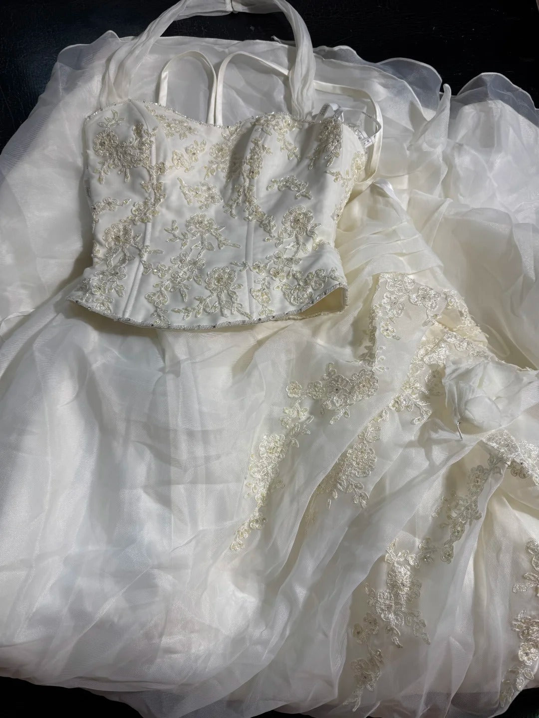 Wedding Dresses Strapless Drop Waist 1950s 1940s 2 Pieces Ball Gown Halter Tulle With Appliques White Petite/Plus Size Bridal Gown For Women HZ0311